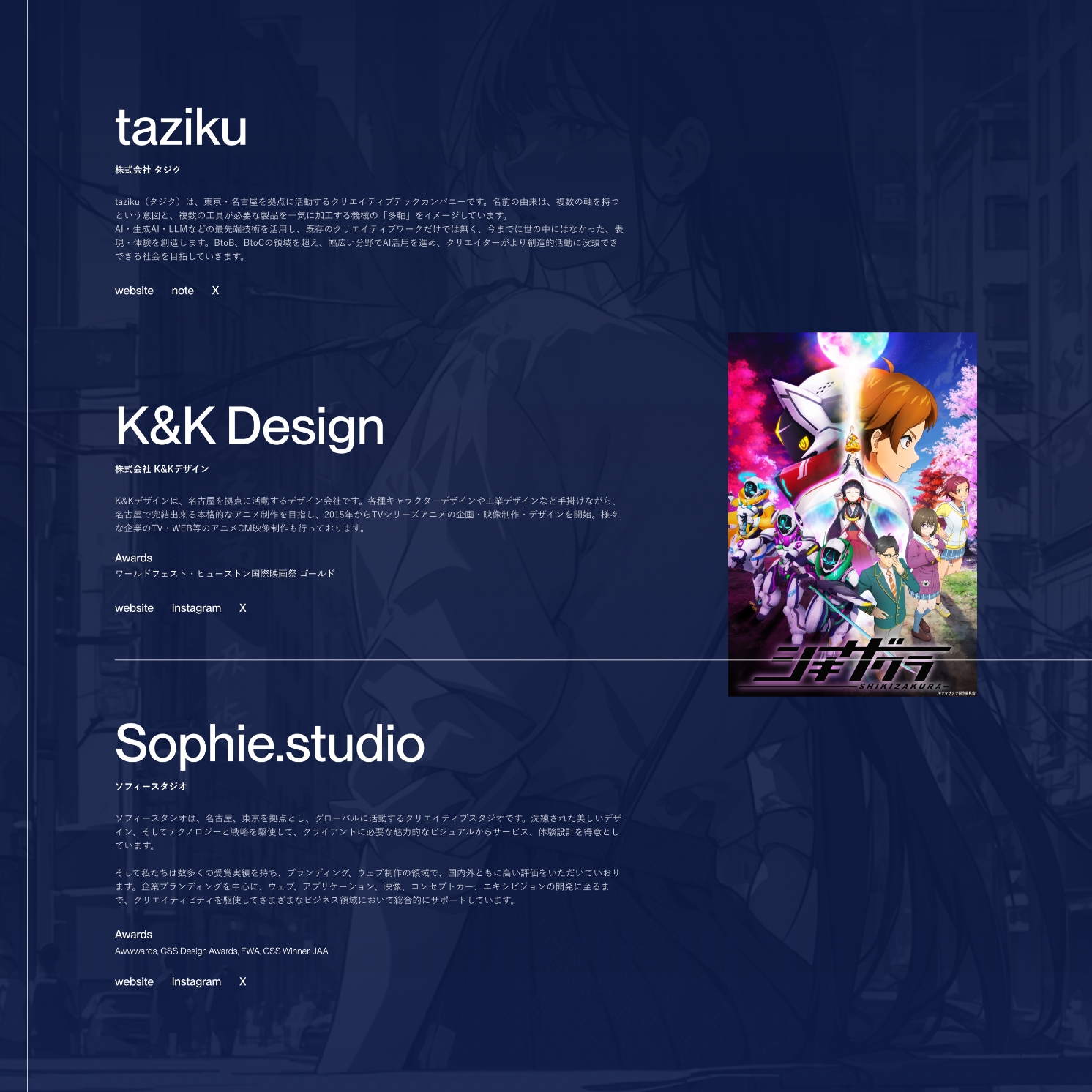 - Design direction, Strategy, Web design/ Hiroki Shindo (SOPHIE STUDIO)