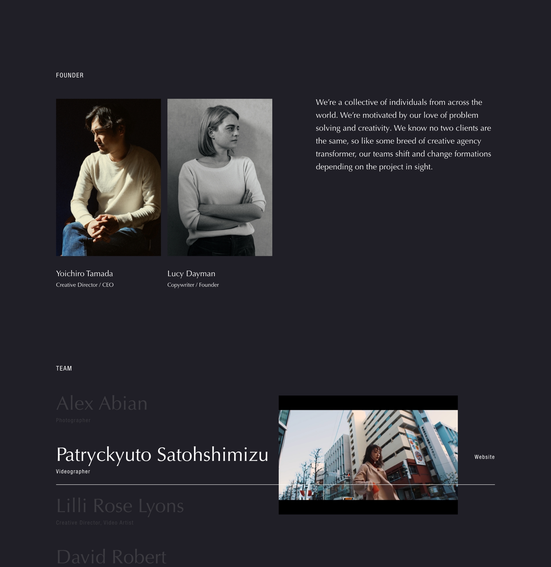 - Creative direction, Strategy, Art direction, Web design/ Hiroki Shindo (SOPHIE STUDIO)